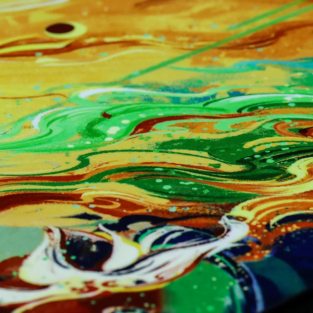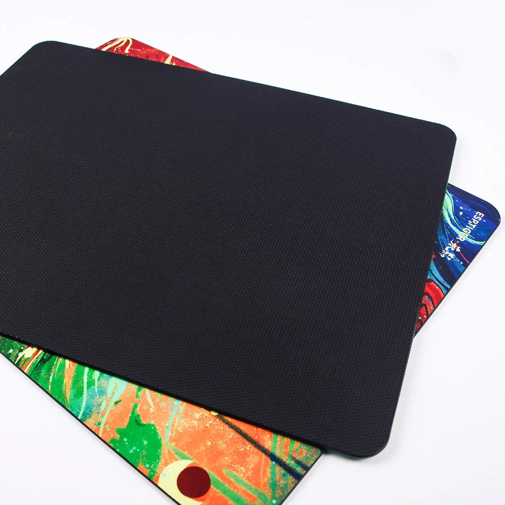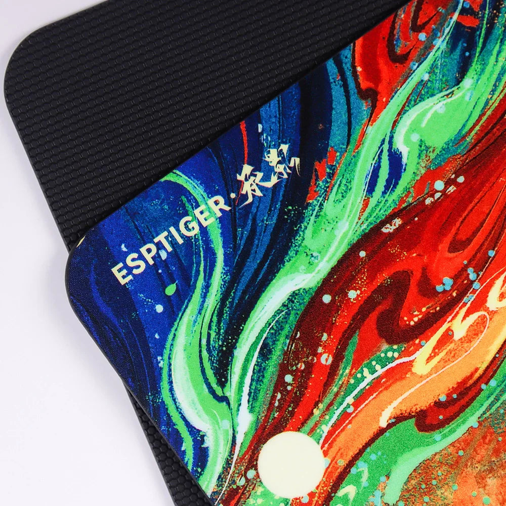 Unlike traditional resin pads, ChengYing is made using a 5-layer process. The surface layer is a photolithographic resin layer that can accurately recognize different types of mouse sensors. The second layer is a high-fidelity pattern printing layer. The third layer is a high-elastic polyurethane foam layer that provides sinking cushioning and reduces noise when lifting and placing the mouse. The fourth layer is PVC, which provides support for the mouse pad. The bottom layer is made of hexagonal PU material, which provides good anti-slip performance.
